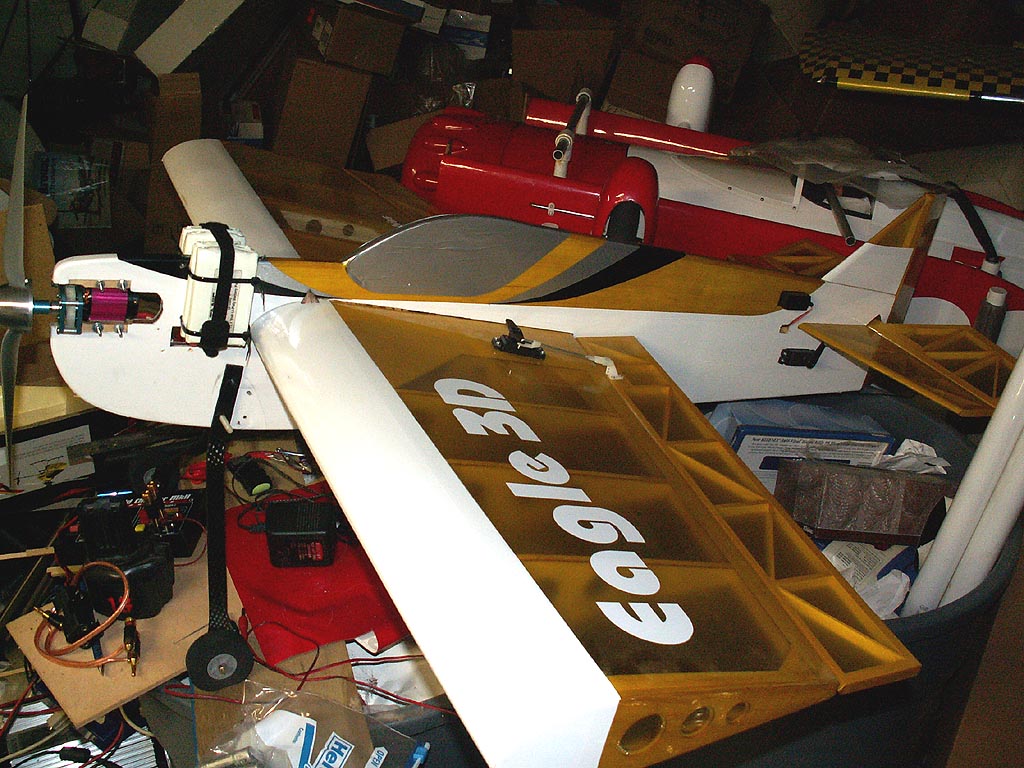 First job was to remove all of Troy's radio gear. I still had the gear from the Lanier Razor, digital servos, fancy ball-bearing/carbon-fiber/titianium linkages, etc... which I intended to install.