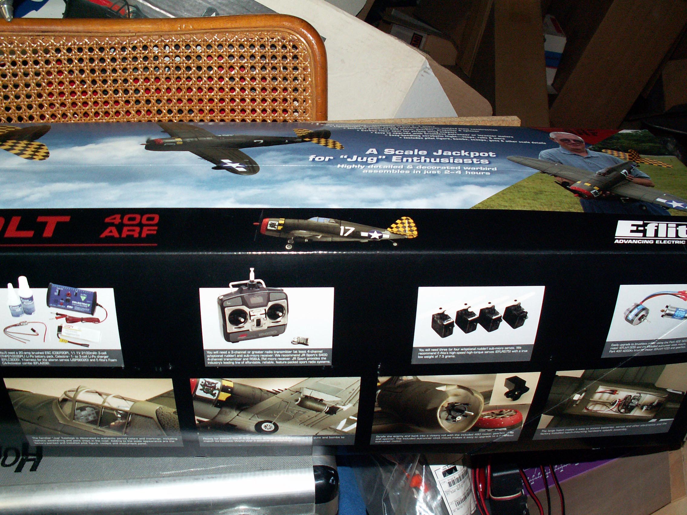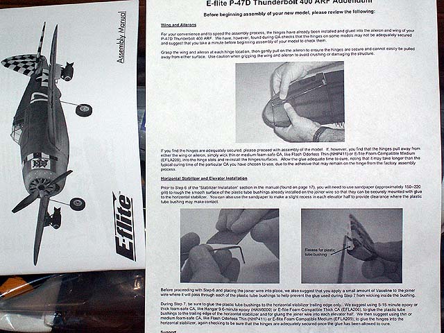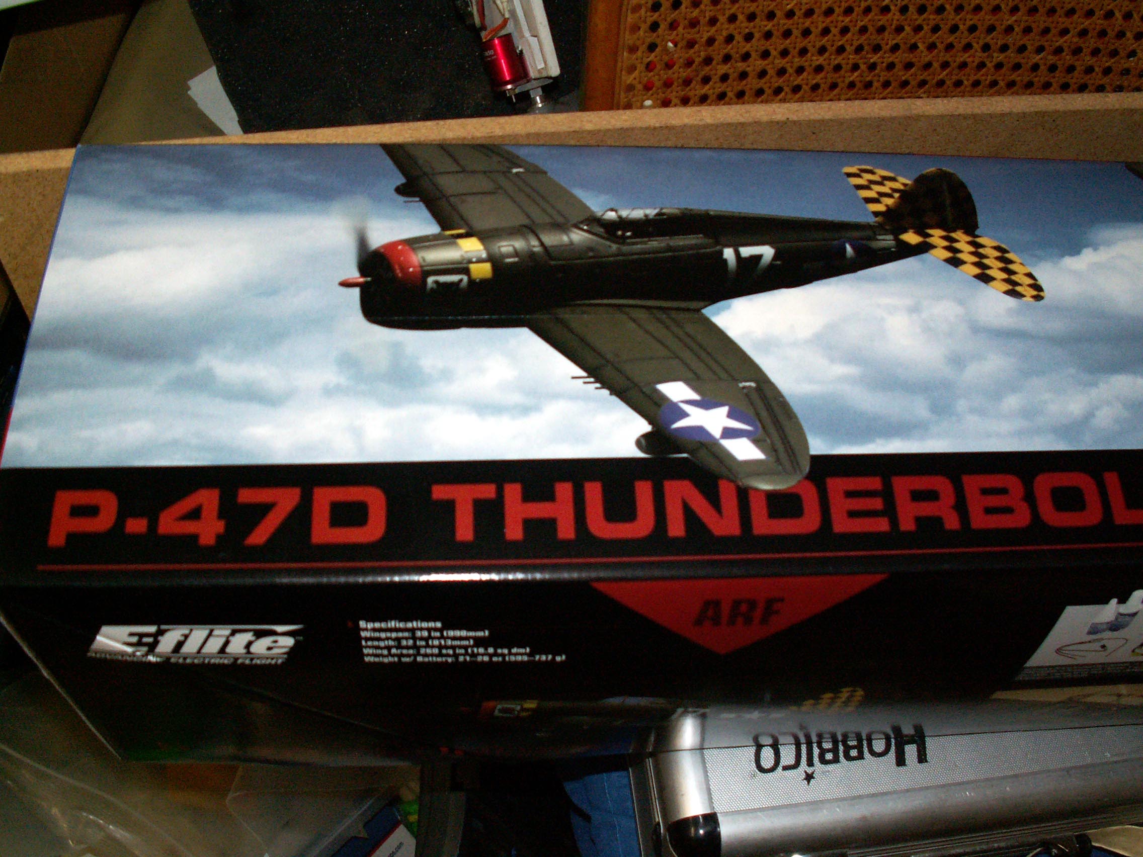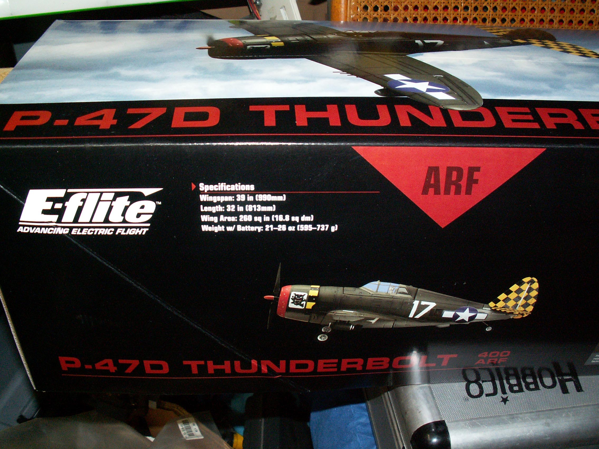 These are pictures and such of an E-Flite P-47, as it came out of the box.