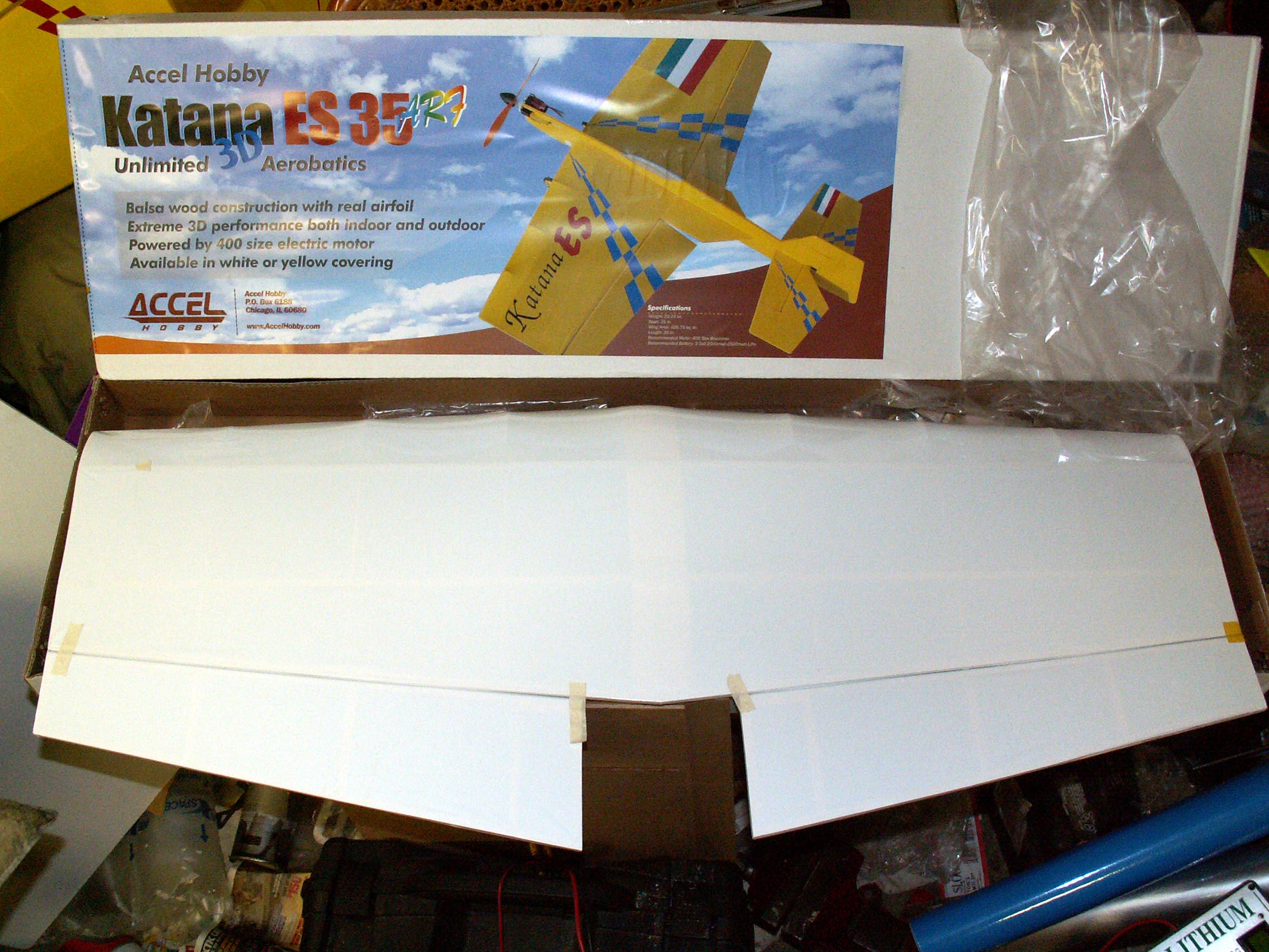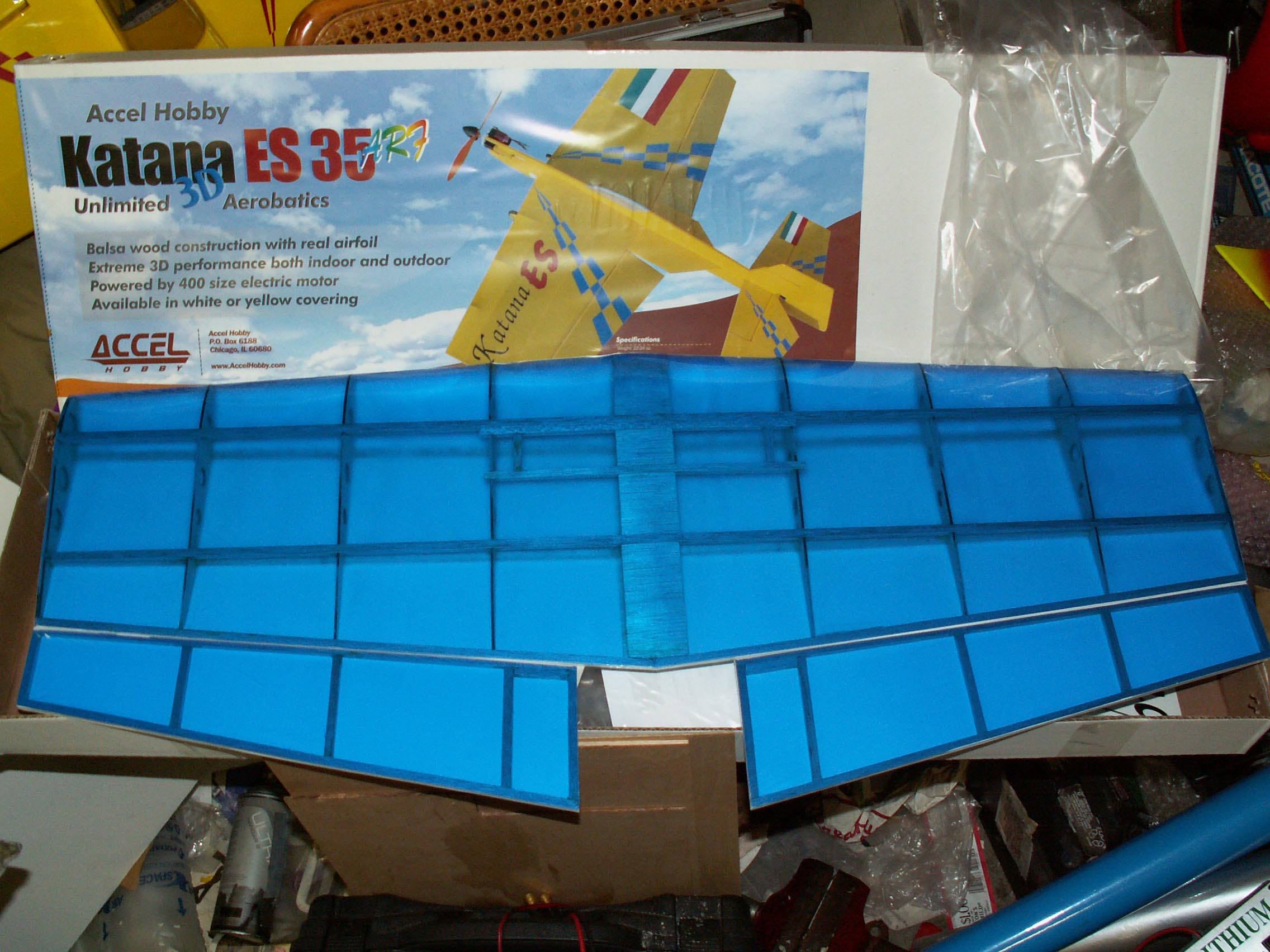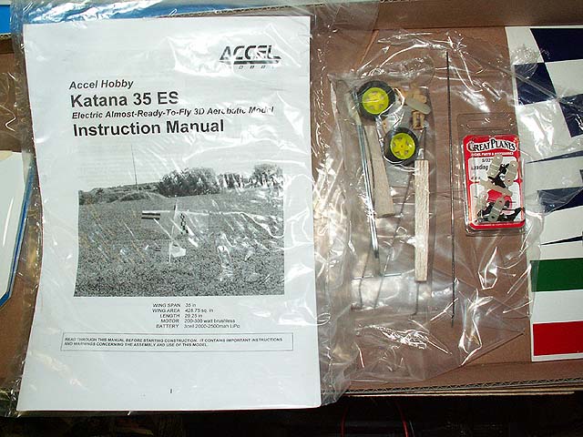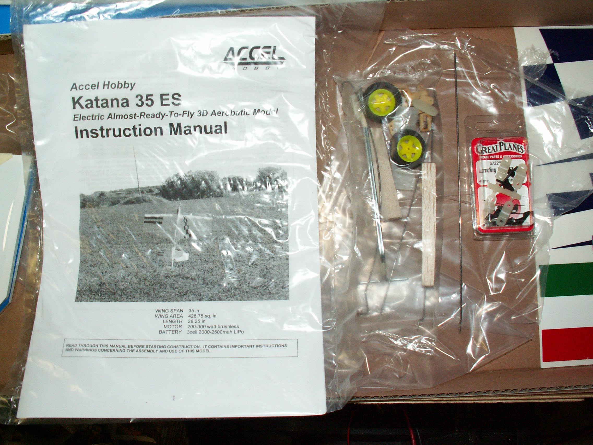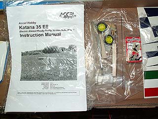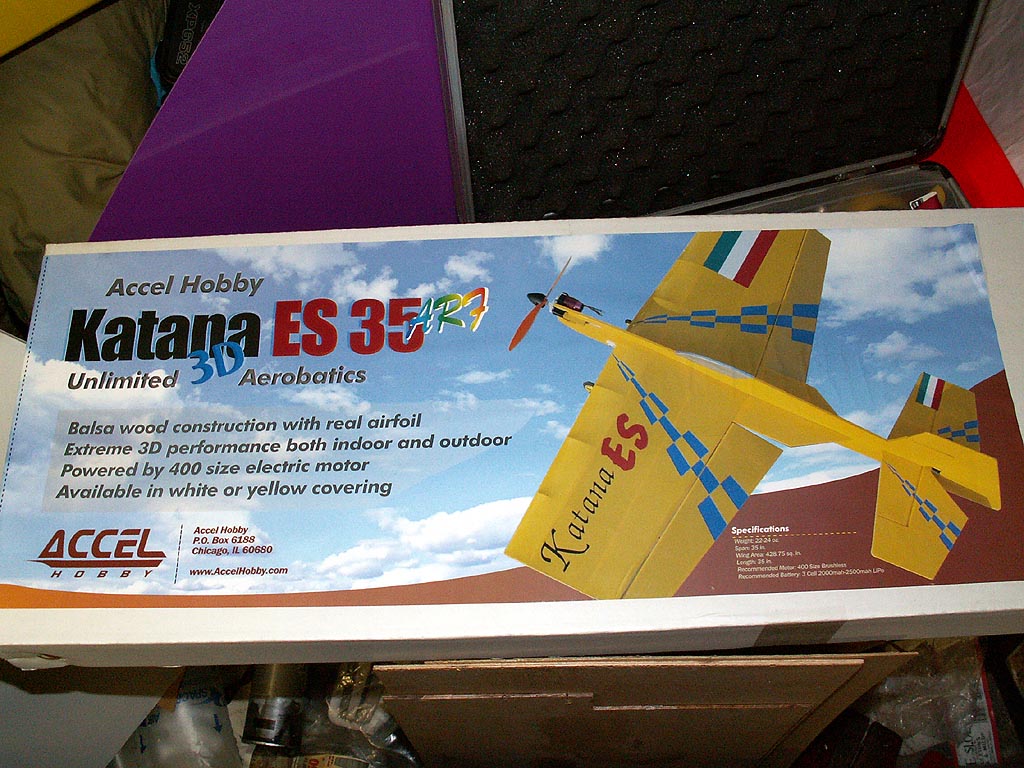 These are pictures of my Katana 35 ES from Accel Hobby as it came out of the box. Purchased 06/24/2005 from HobbyTownUSA in Columbia, MO. Here is the equipment I intend to use: