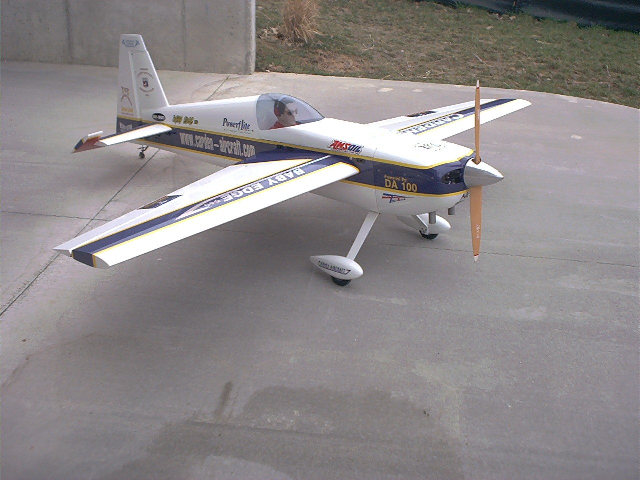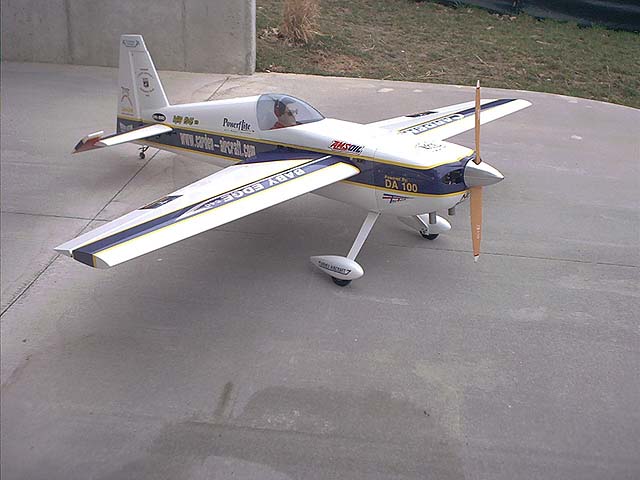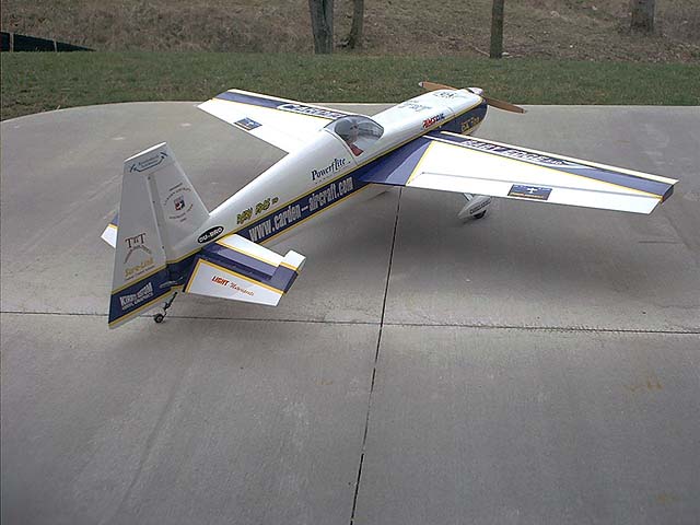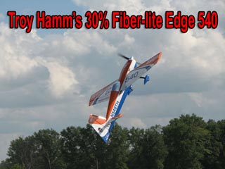 Troy Hamm's 30% Edge from Fiber-lite. 14.5 pounds, powered by a DA-50 gas engine, and flies great! Sporting new graphics on this flight.