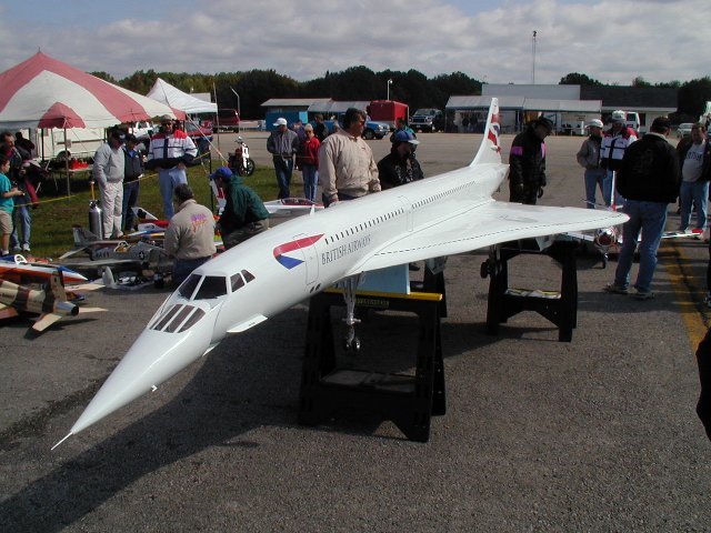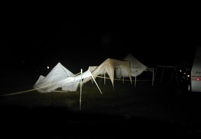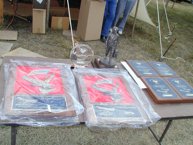 We had a great time like usual this year at Superman, although the weather was a bit cold this time around. Just as we arrived in Metropolis, a nasty front was right behind us. The first pic below shows some of the aftermath of that evening, as many of the canopies in the area suffered significant damage. Also below are several good pics of the AMT's new Concord, SWB's turbine Harley (and it running at night), the rubble left after a turbine crash/fire, a pic of this years great awards, and lastly, a shot or two of us from Columbia, with my F-15.